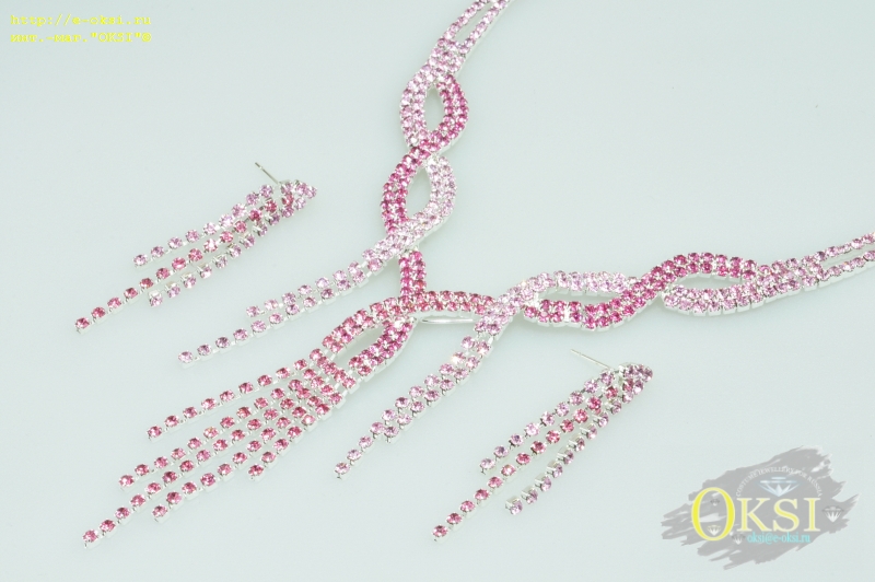 Великолепный комплект из сверкающих кристаллов розовых оттенков, для ярких и знаменательных событий. Длина колье 32 см + 12 см цепочка регулирующая длину. Качественное родиевое покрытие серебряного цвета.