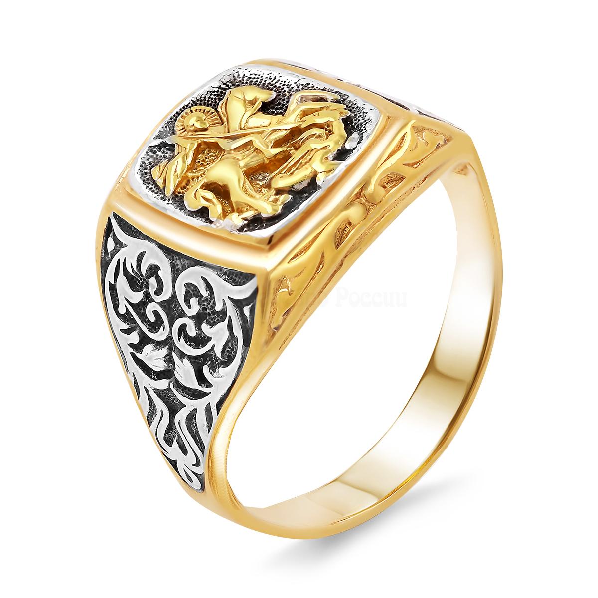 Печатка из серебра с лимонным золочением и чернением - Георгий Победоносец 925 пробы 1-028чз