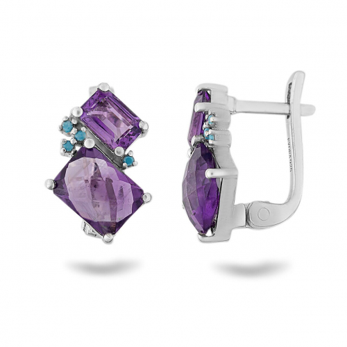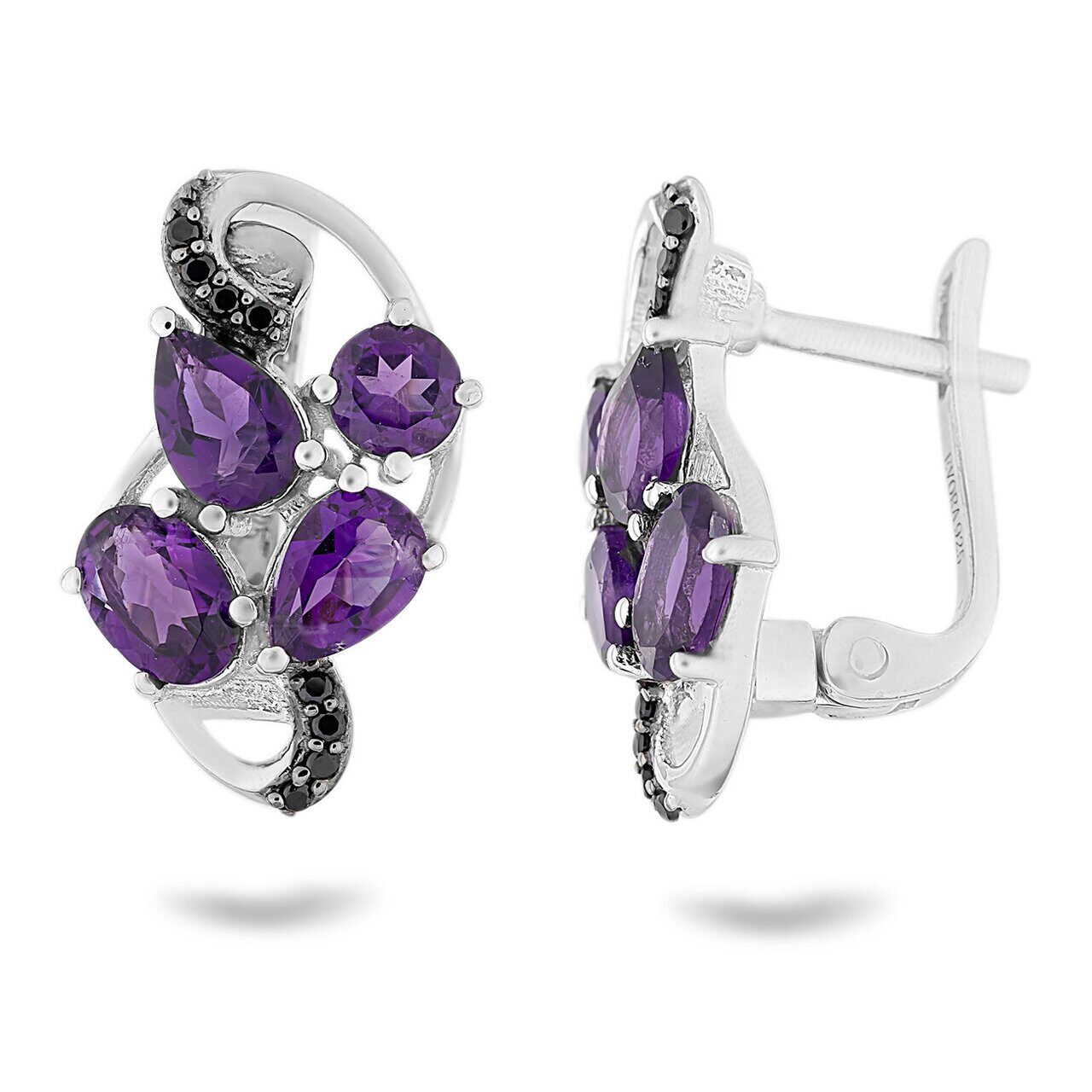Серьги, арт.654491 Серебро Серебро 925, 4,67 гр., аметист , шпинель