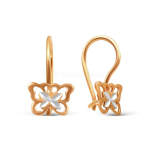 Серьги детские из золочёного серебра на петле с алмазной огранкой - Бабочки 925 пробы ДС-037з
