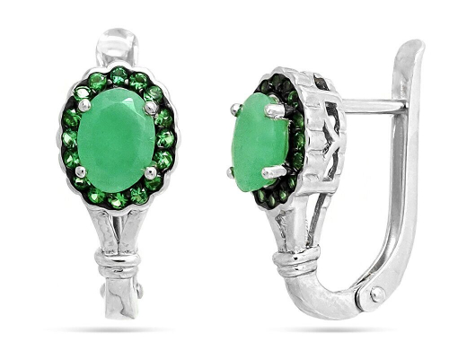 Серьги, арт.640291 Серебро Серебро 925, 2,61 гр., изумруд берилл