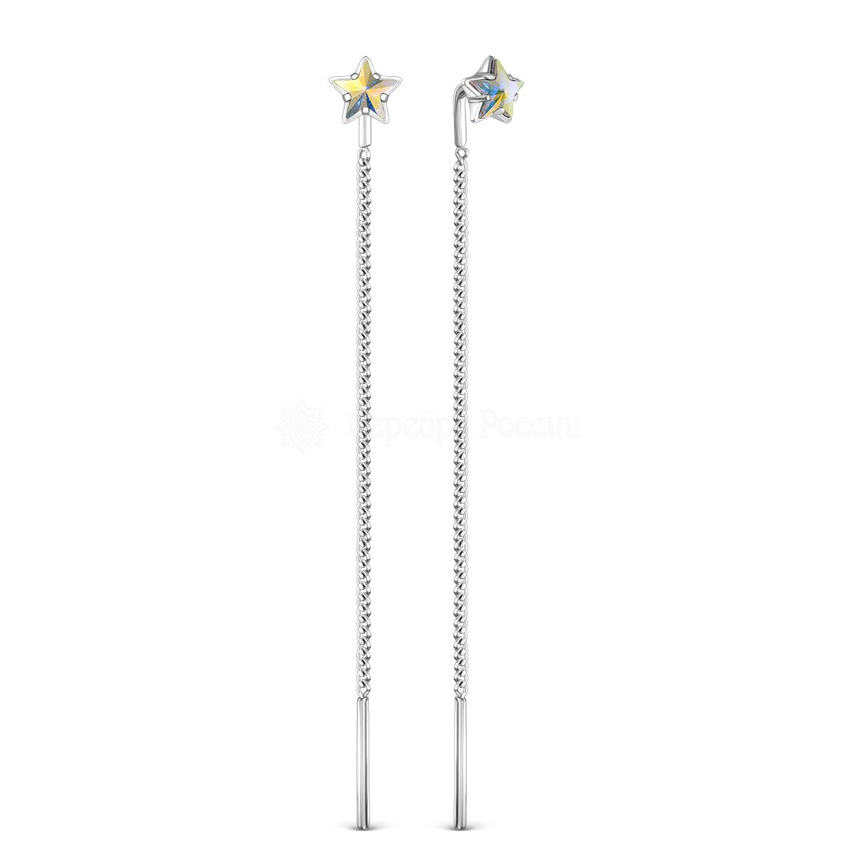 Серьги-продёвки длинные из серебра с кристаллами премиум Австрия цв. северное сияние родированные 925 пробы с-2000-1-001AB