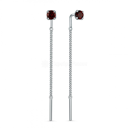 Серьги-продёвки длинные в форме клевер из серебра с камнем малахит родирование 925 пробы 421-10-945-3р