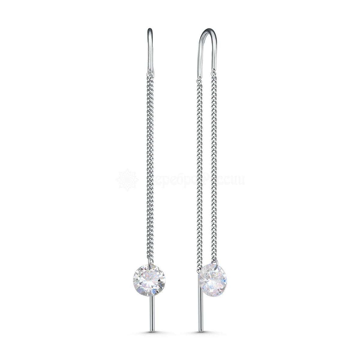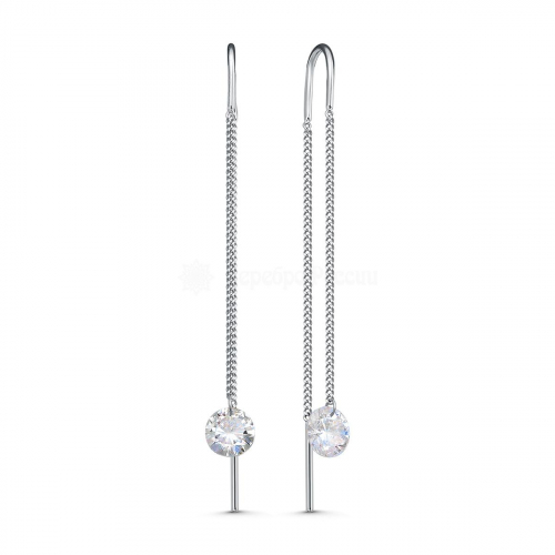 Серьги-продёвки из серебра с фианитами родированные - 6,5 см 925 пробы 111039_001
