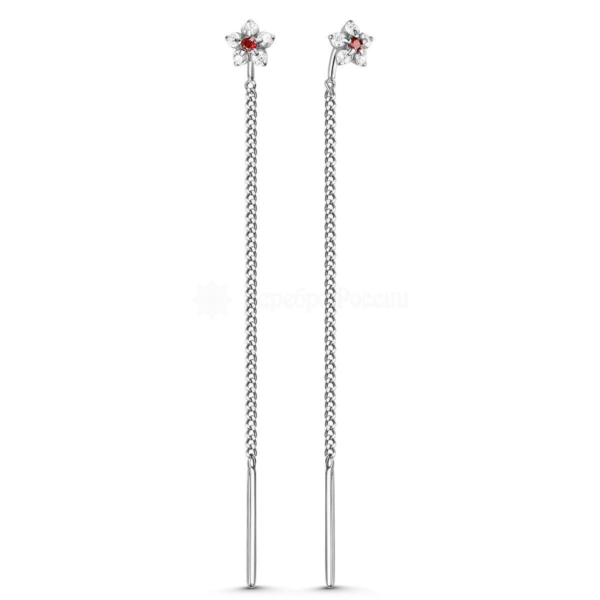 Серьги-продёвки из серебра с фианитами родированные 925 пробы с7-938-2р204