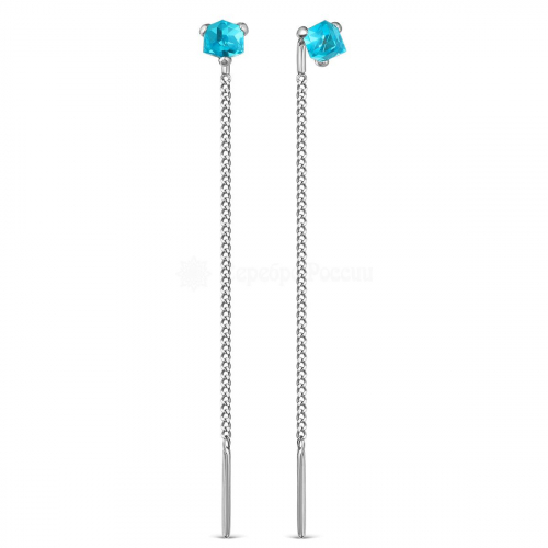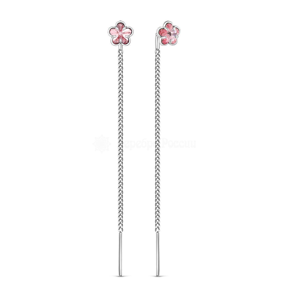 Серьги-продёвки из серебра с кристаллами премиум Австрия Светло-розовый 925 пробы с-2002-1-223