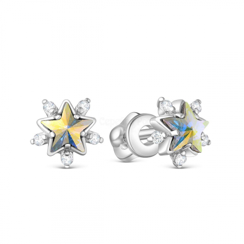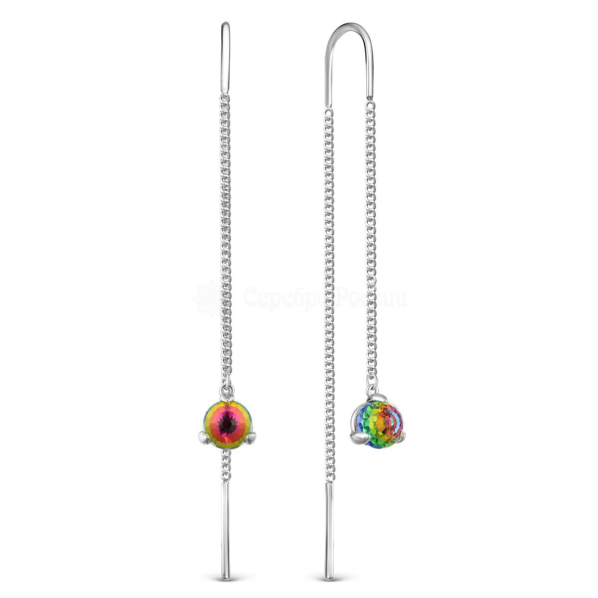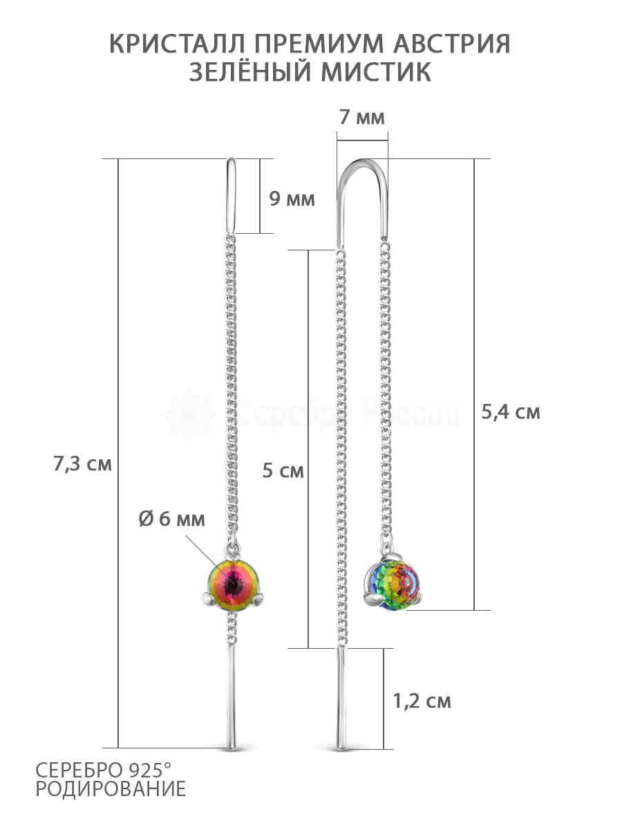 Серьги-продёвки из серебра с кристаллами Премиум Австрия зелёный мистик родированные 925 пробы 0061с-001VM