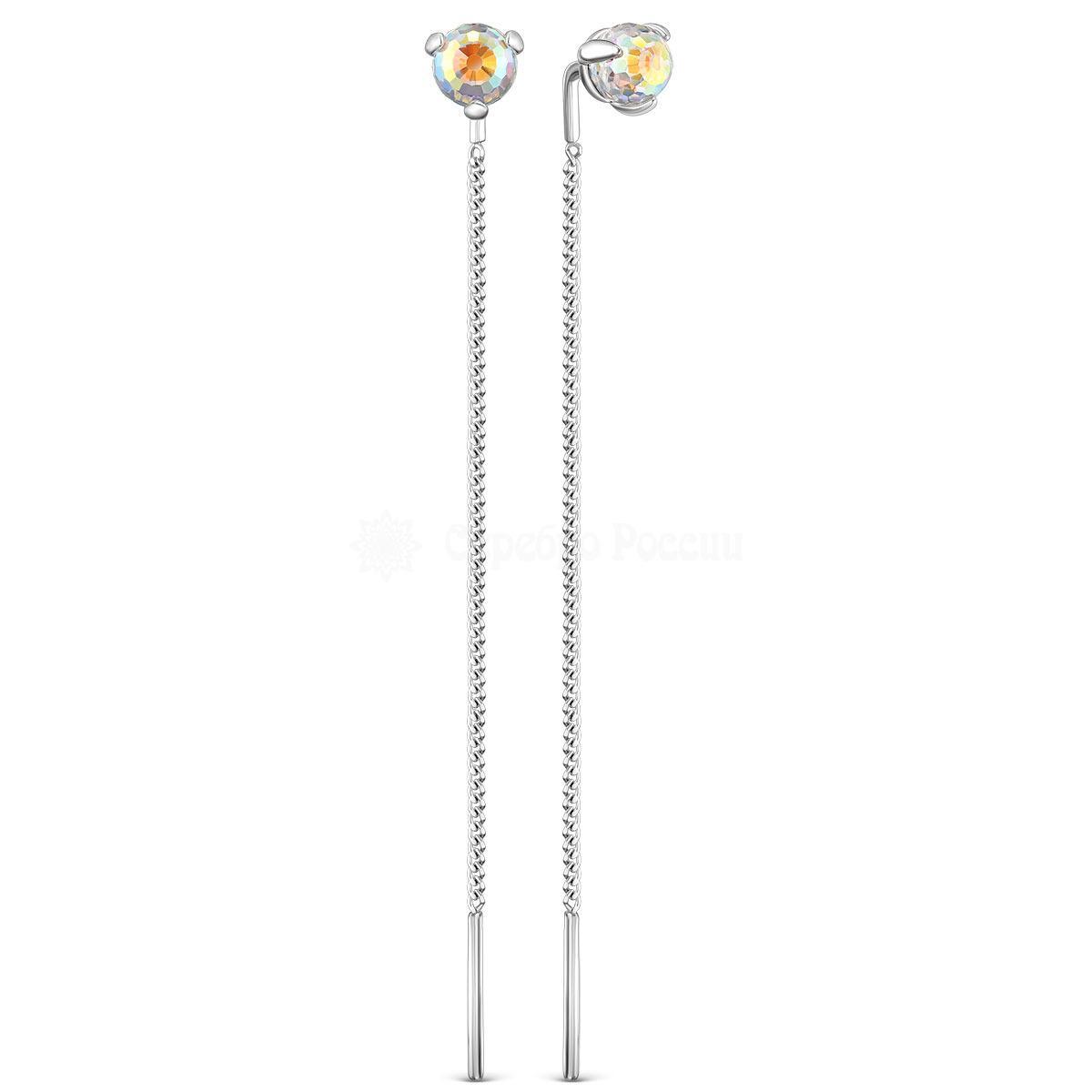 Серьги-продёвки из серебра с кристаллами Swarovski родированные 925 пробы 0059с-001AB