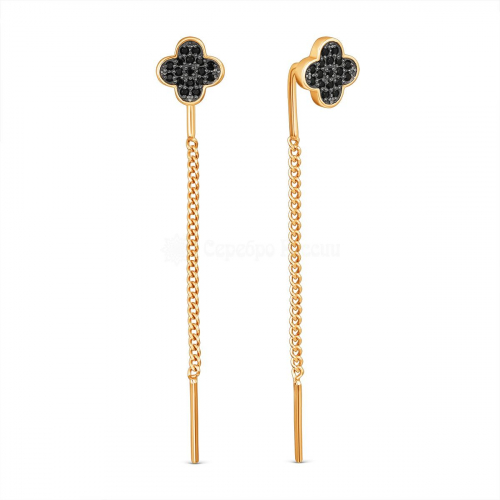 Серьги-продёвки клевер четверолистник из золочёного серебра со шпинелью 925 пробы 2-570зч416