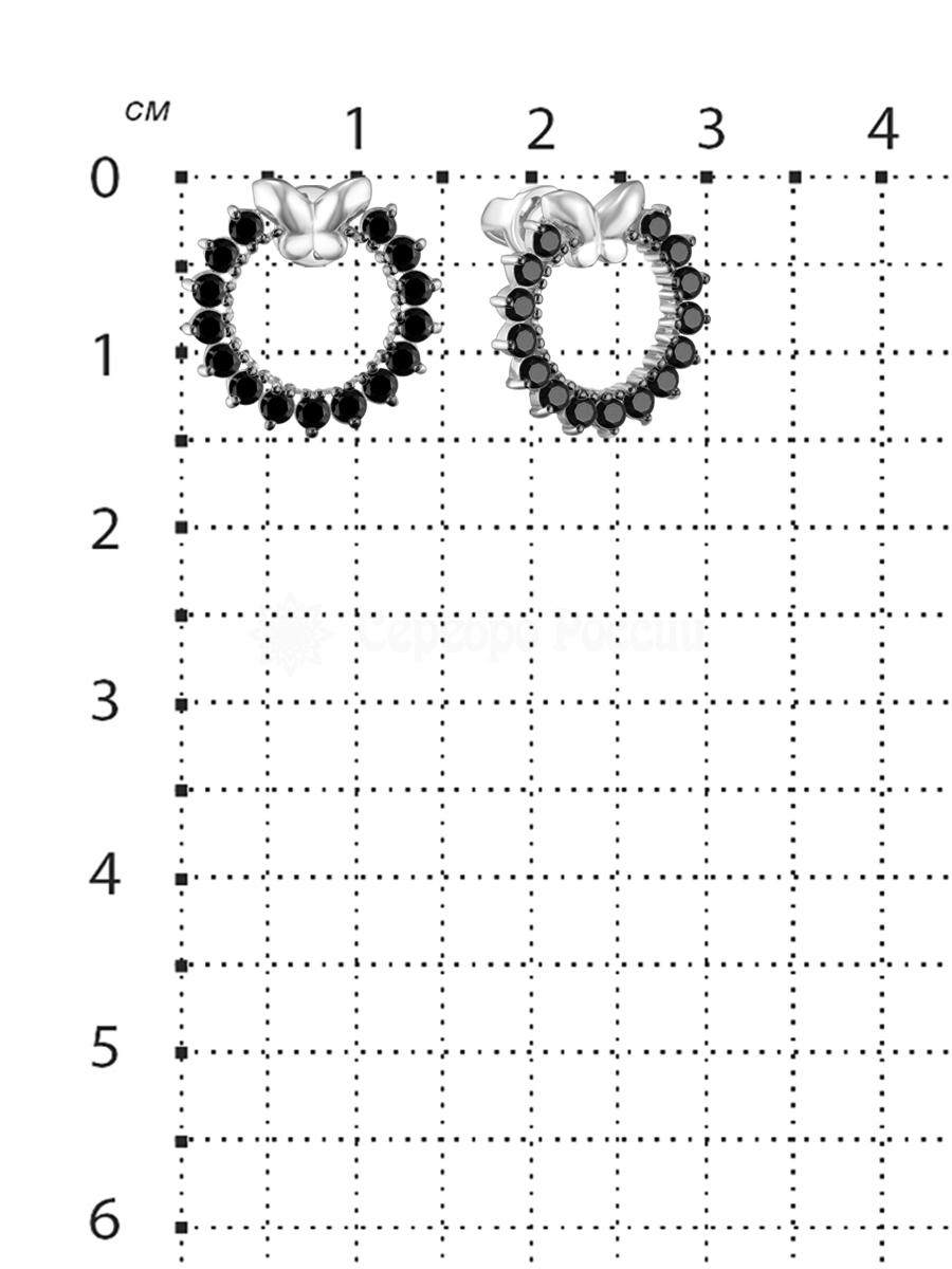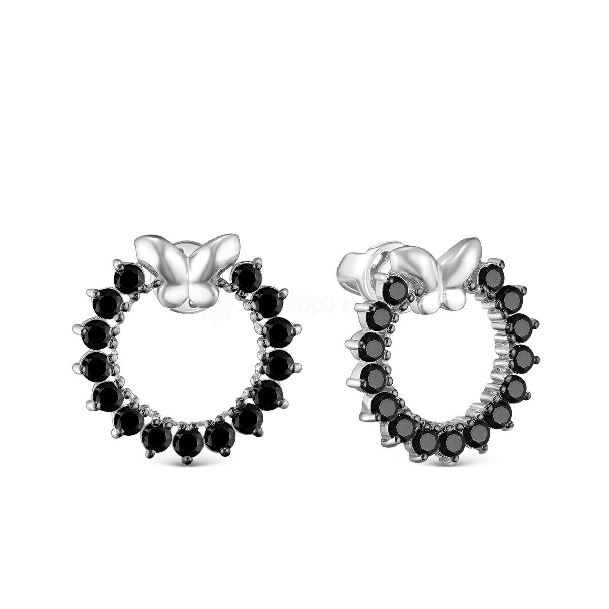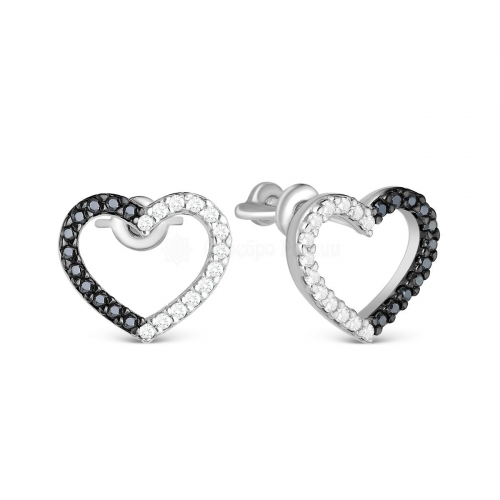 Серьги-пусеты из серебра с фианитами родированные 925 пробы 2-263чр216