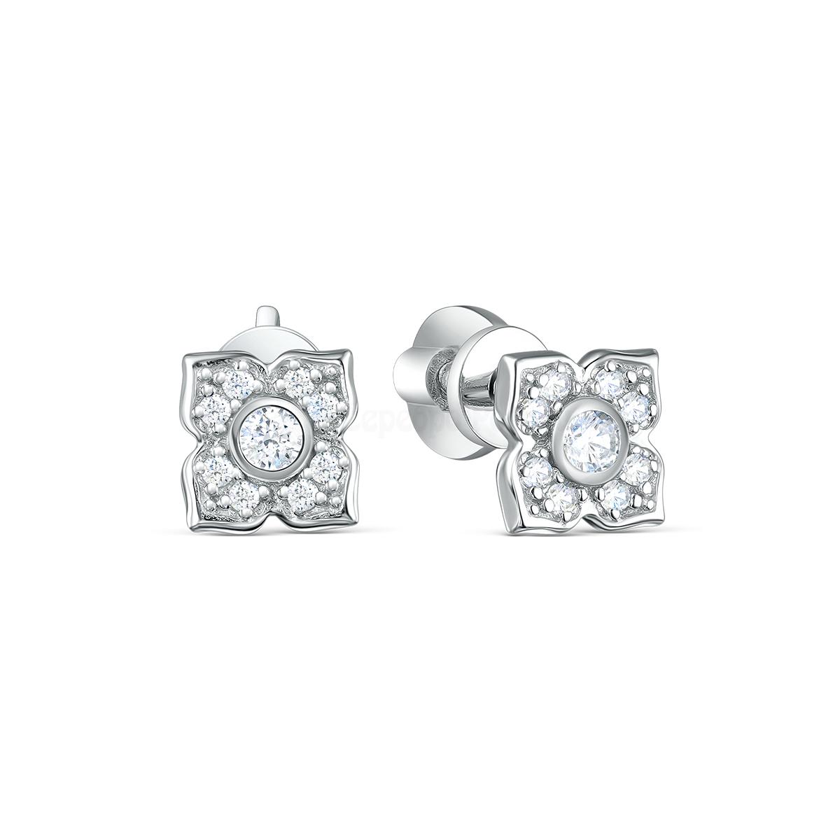 Серьги-пусеты из серебра с фианитами родированные 925 пробы 12-1191р