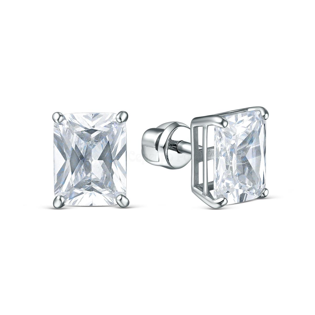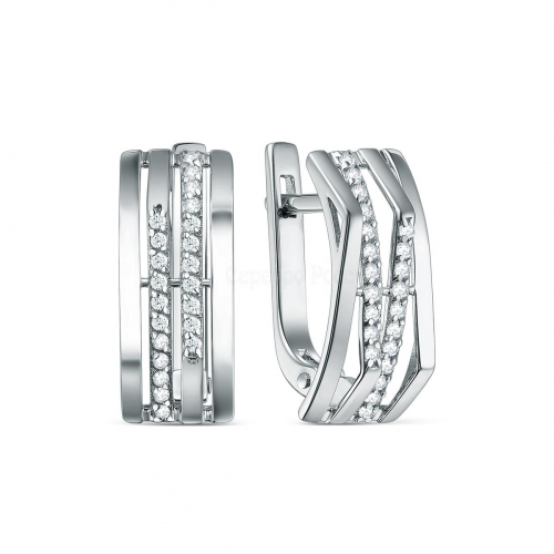 Серьги-пусеты из серебра с фианитами родированные 2-037р200