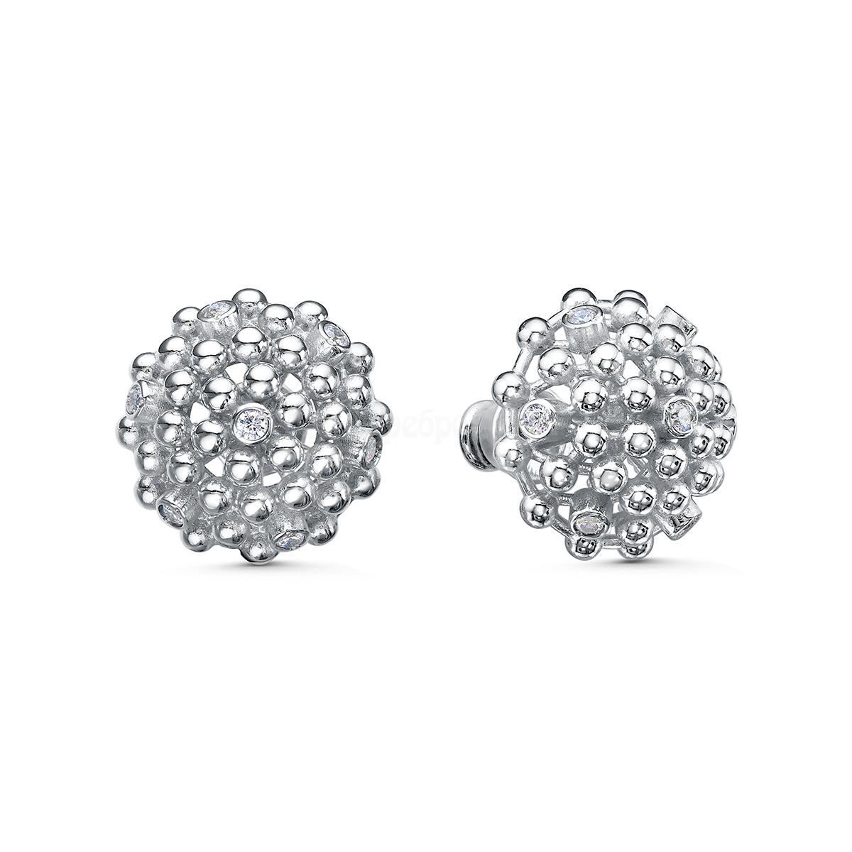 Серьги-пусеты из серебра с фианитами родированные 221-10-284р