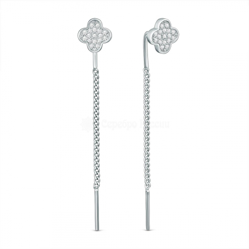 Серьги-пусеты из серебра с фианитами родированные 925 пробы С-3434-Р