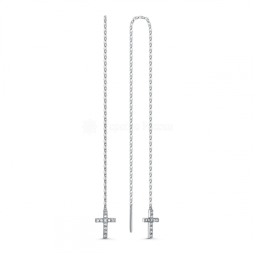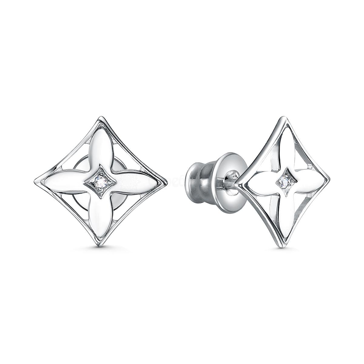 Серьги-пусеты из серебра с фианитами родированные - Клевер 925 пробы 221-10-052р