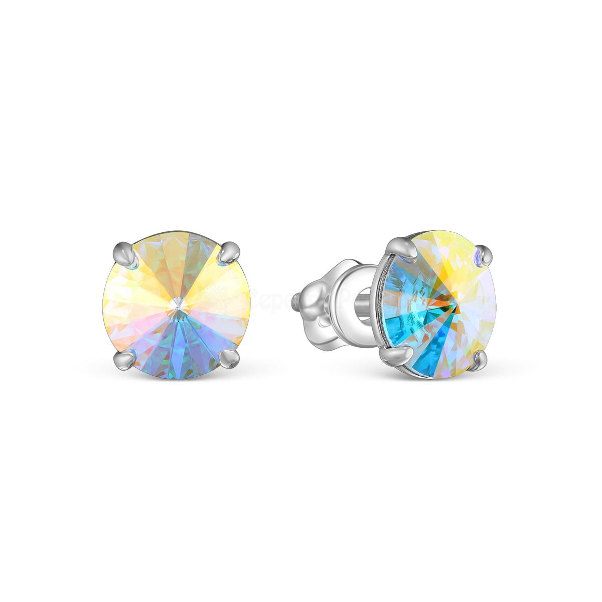 Серьги-пусеты из серебра с кристаллами премиум Австрия северное сияние родированные 925 пробы 0018с-001АВ