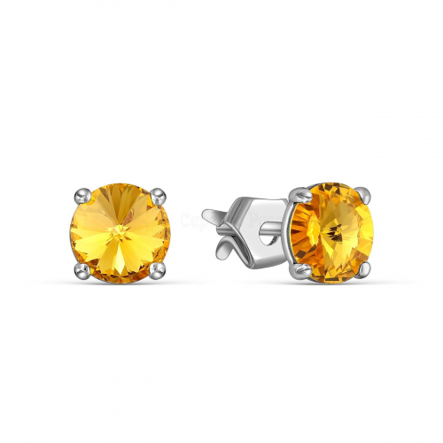 Серьги-пусеты из серебра с кристаллами премиум Австрия топаз родированные 925 пробы 0017с-001TOPAZ