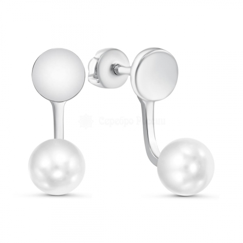 Серьги-пусеты из серебра с культ.жемчугом родированные (трансформеры, 2 в 1) 925 пробы с1608р1005