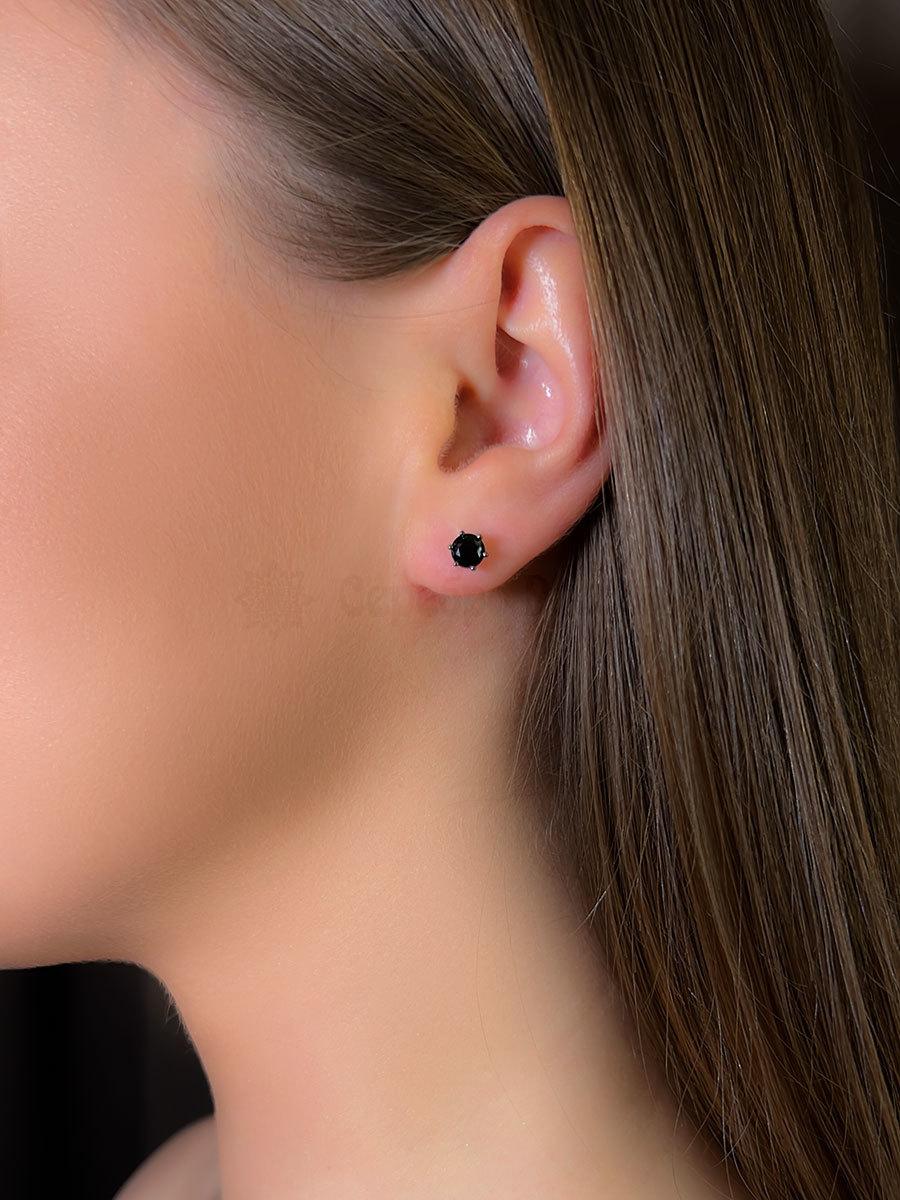 Серьги-пусеты из серебра с чёрной шпинелью родированные 925 пробы с-7255р416