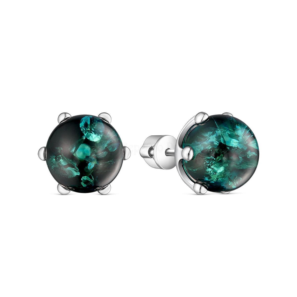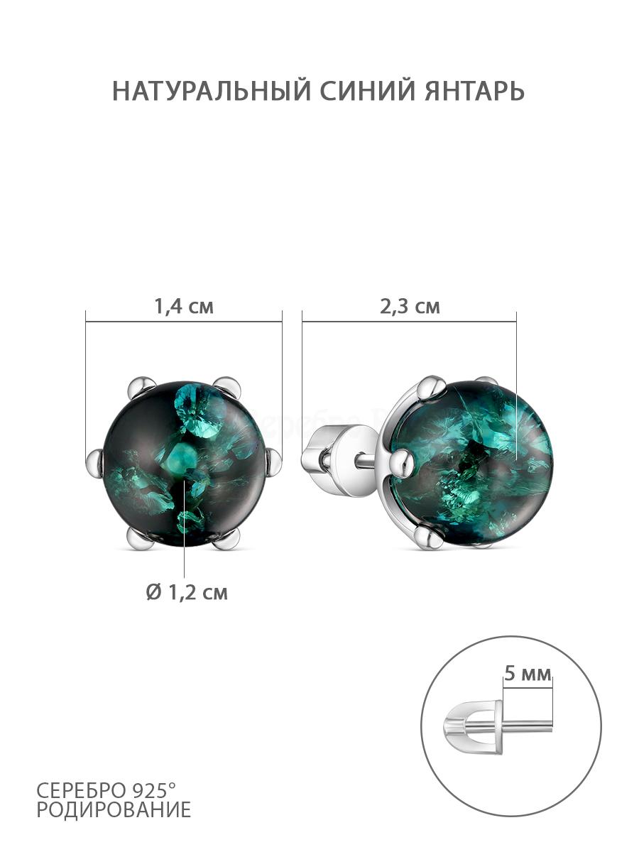 Серьги-пусеты из серебра с натуральным синим янтарём родированные 925 пробы 04-802-0139-07