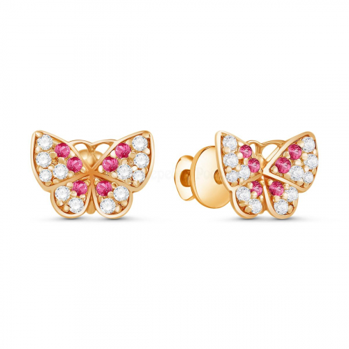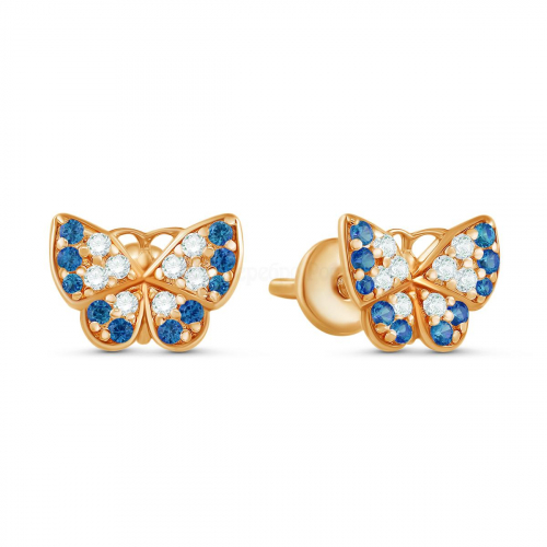 Серьги-пусеты из золочёного серебра с фианитами - Бабочки 925 пробы п6-086-2з215