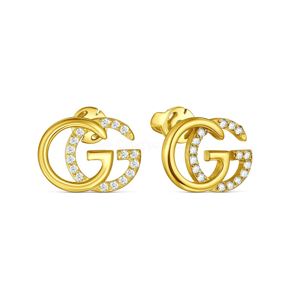 Серьги-пусеты из золочёного серебра с фианитами - GG 925 пробы 4-579лз200