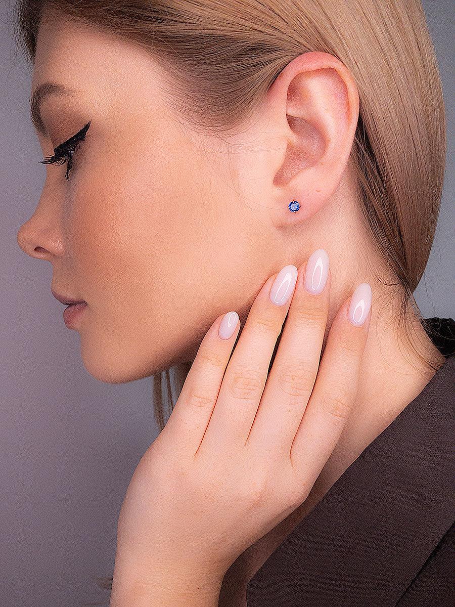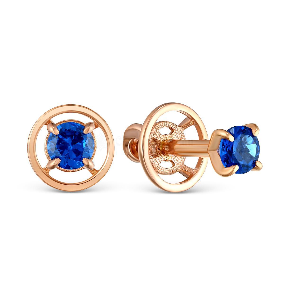 Серьги-пусеты из золочёного серебра с синт.синей шпинелью 925 пробы с-2450зс608