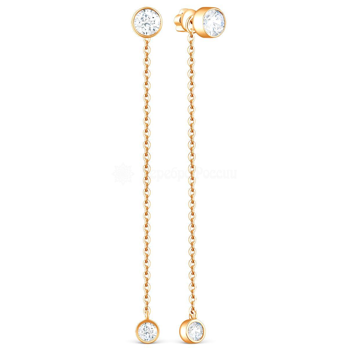 Серьги-пусеты на цепи из золочёного серебра с фианитами (2в1) 150044_001з