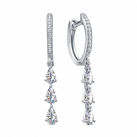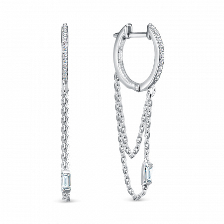 Серьги с фианитом родированные серебро 925*