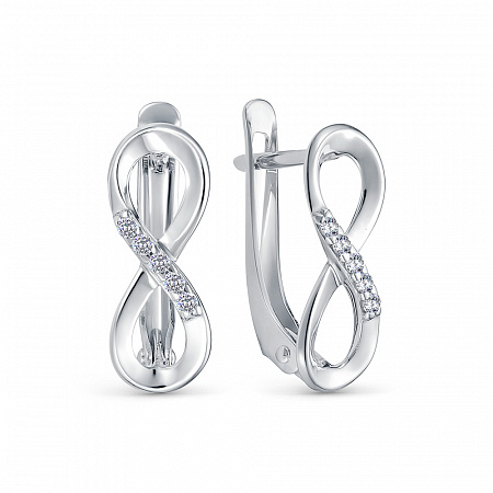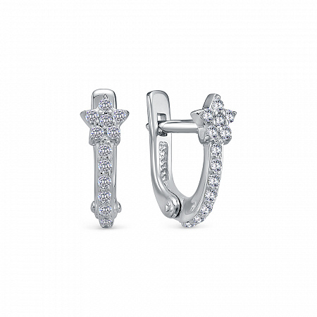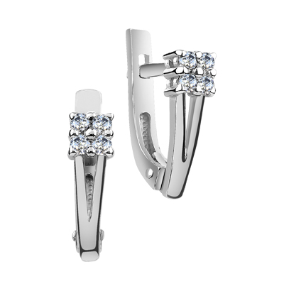 Серьги с фианитом родированные серебро 925*