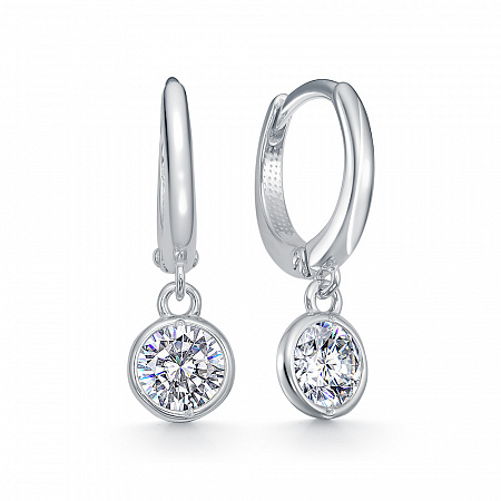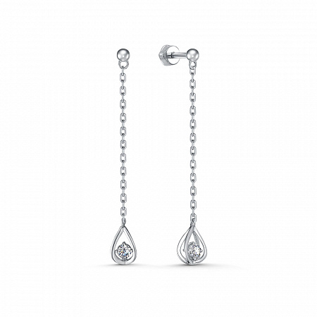 Серьги с фианитом родированные серебро 925*
