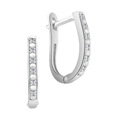 Серьги с фианитом родированные серебро 925*