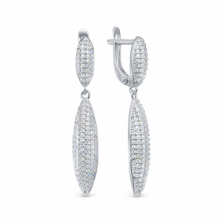Серьги с фианитом родированные серебро 925*