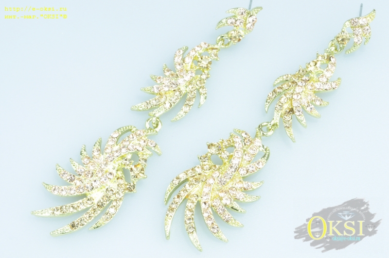 Роскошные, длинные серьги, украшены сверкающими кристаллами с красивым янтарным оттенком. Качественное гальваническое покрытие золотого цвета. Длина серьги 9 см.