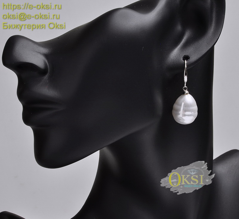 Стильные серьги с крупным искусственным жемчугом. застёжка - крючок.