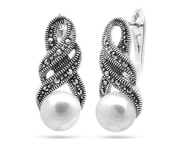 Серьги из серебра жемчуг, марказит, SL-AGA26