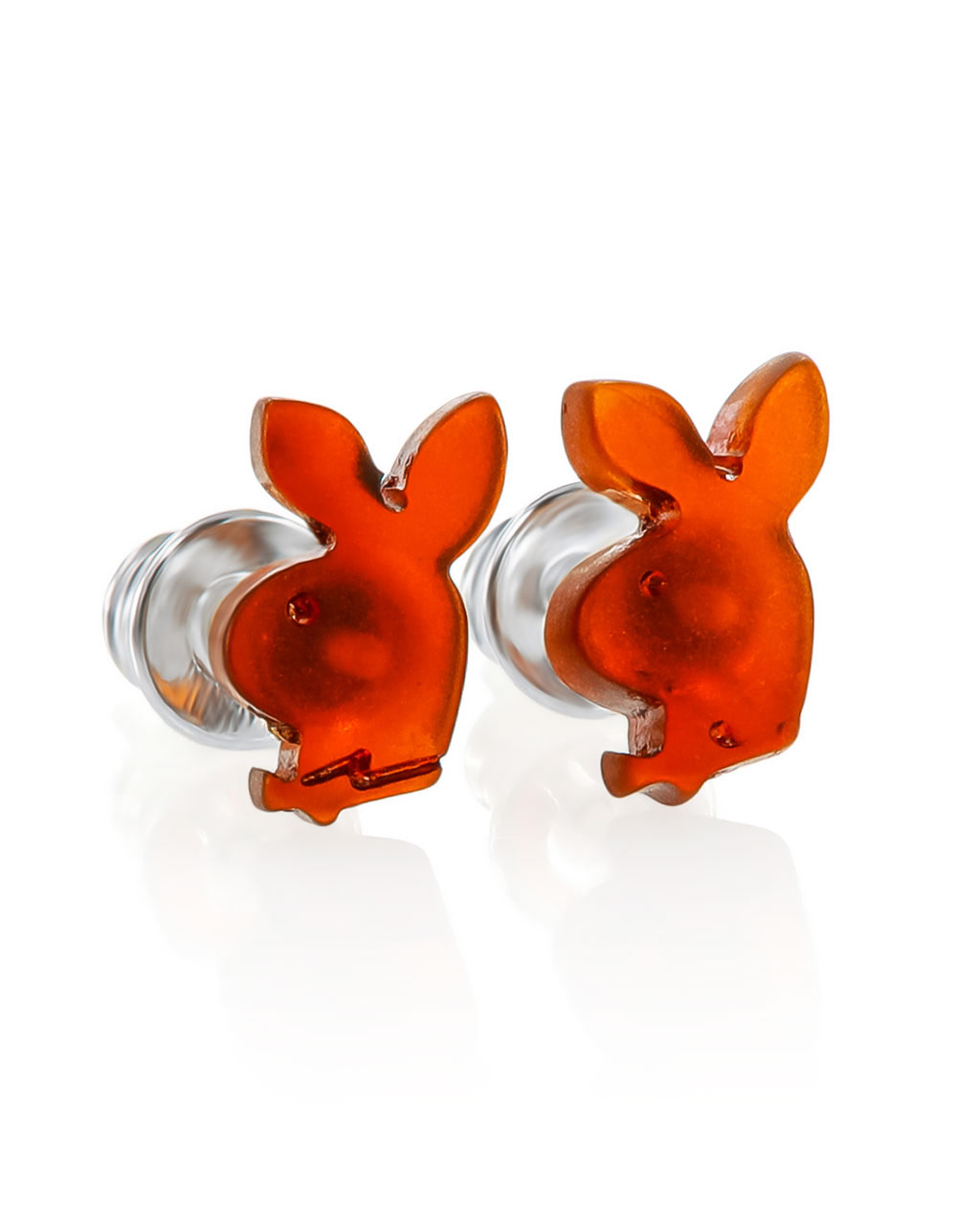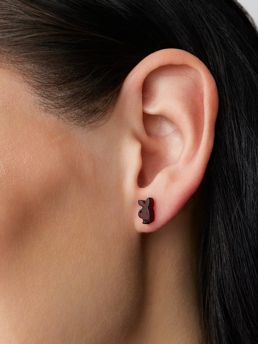 Забавные серьги-гвоздики «Зайка Playboy» из натурального янтаря