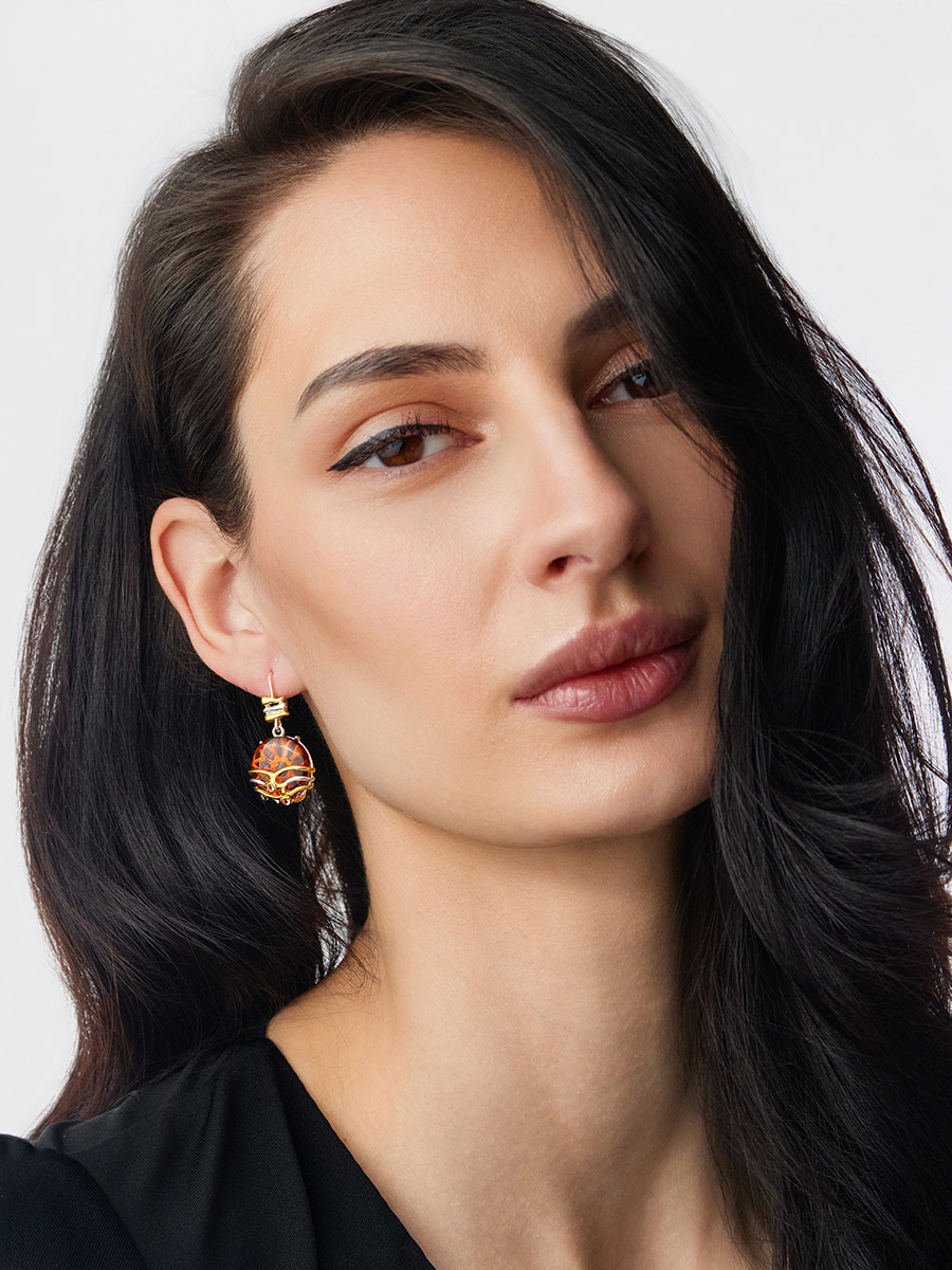 Замечательные серьги «Феличита» из коньячного янтаря