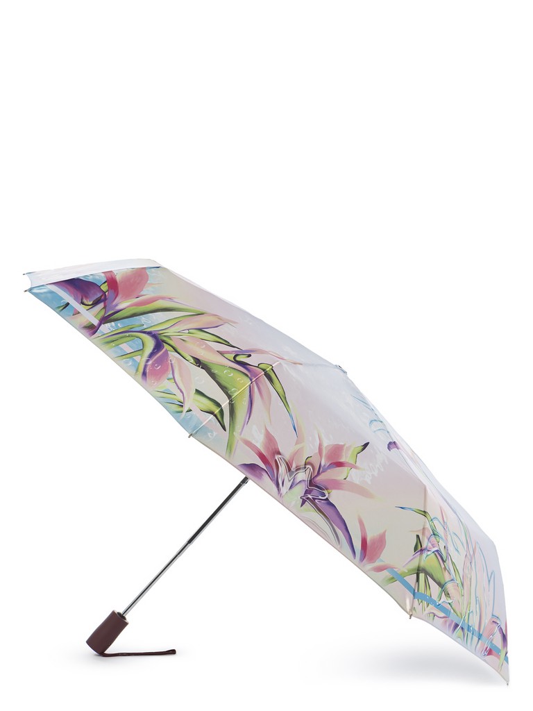 Женский зонт-автомат торговой марки ELEGANZZA с системой Smart. Купол: 100% полиэстер, сатин. Материал каркаса: сталь + алюминий + фибергласс. Материал ручки: пластик. Длина изделия - 30 см. Диаметр купола - 104 см.
