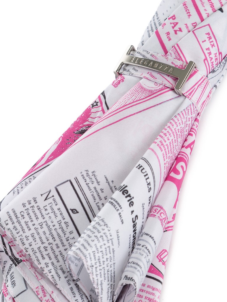 Женский зонт-трость, полуавтомат торговой марки ELEGANZZA. Материал купола: 100% полиэстер, эпонж. Материал каркаса: сталь + фибергласс. Материал ручки: пластик. Длина изделия - 86 см. Диаметр купола - 101 см.
