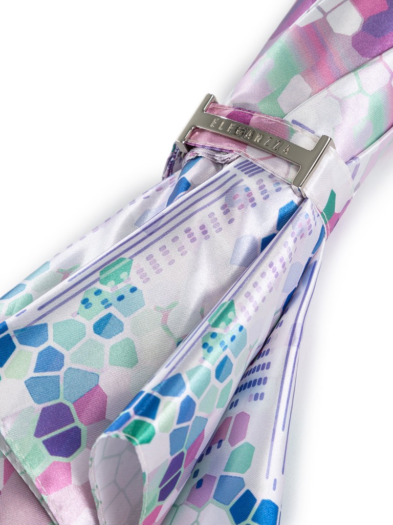 Женский зонт-трость, полуавтомат торговой марки ELEGANZZA. Материал купола: 100% полиэстер, сатин.  Материал каркаса: сталь + фибергласс. Материал ручки: пластик. Длина изделия - 86 см. Диаметр купола - 101 см.