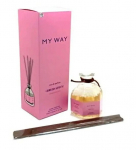 Ароматический диффузор представляет собой лаконичную прозрачную емкость, наполненную ароматической жидкостью на спиртовой основе. Для начала ароматизации помещения следует снять с флакона крышку и погрузить в горлышко идущие в комплекте ротанговые палочки. Меняя количество используемых палочек, вы можете управлять интенсивностью ароматизации помещения. Интенсивность аромата можно изменять, уменьшая или увеличивая количество палочек. Для максимальной интенсивности аромата устанавливайте флакон вблизи источника воздушного потока. Переворачивайте палочки по мере их высыхания.