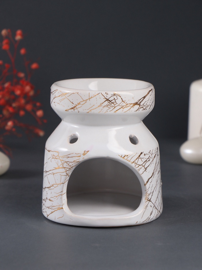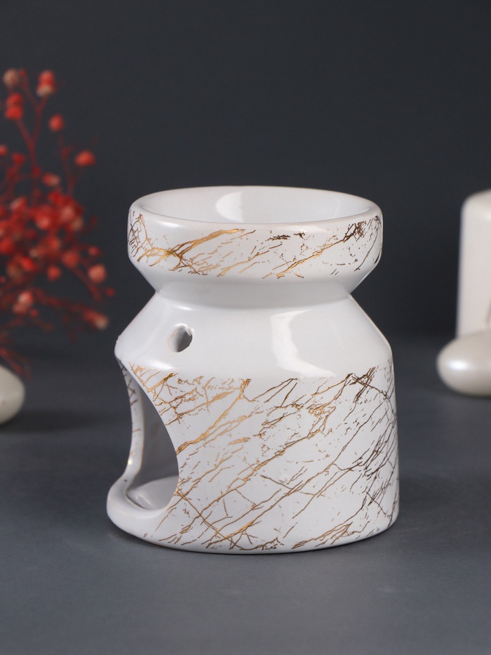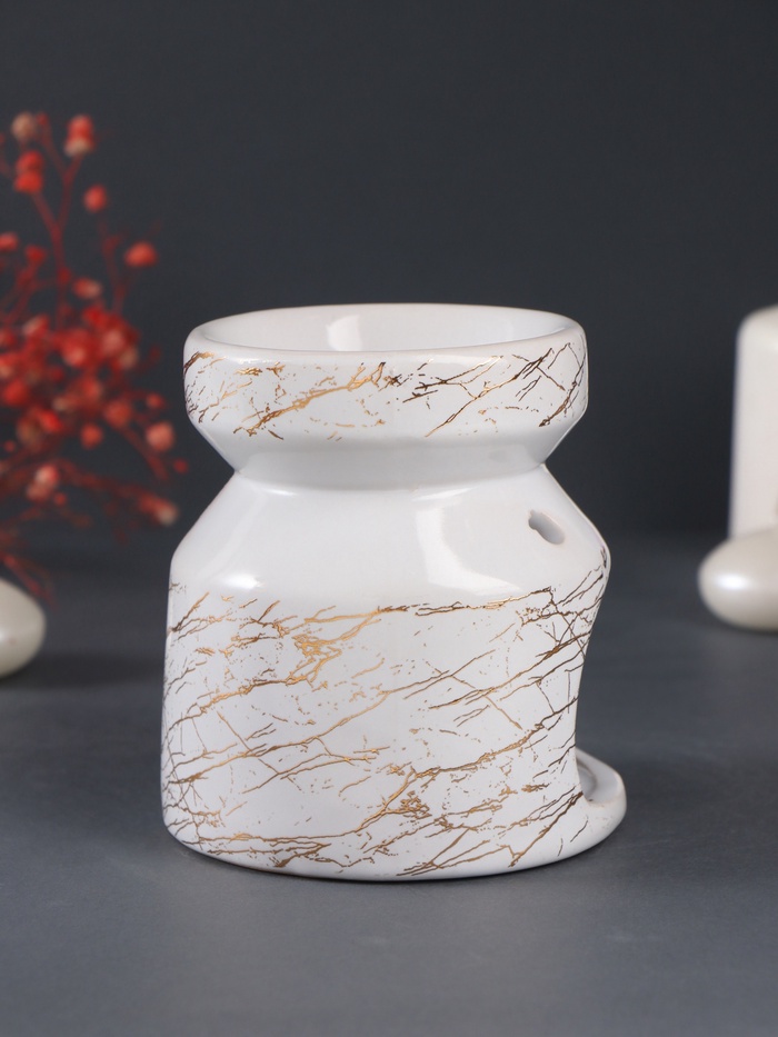 Представляем аромалампу, которая станет изысканным акцентом в вашем интерьере и источником уюта в доме. Её дизайн вдохновлён благородным белым мрамором с тонкими золотыми трещинками, что создаёт ощущение роскоши и естественной красоты. Выполненная из высококачественной керамики, она сочетает в себе функциональность и элегантность, дополняя любой стиль — от классического до современного.