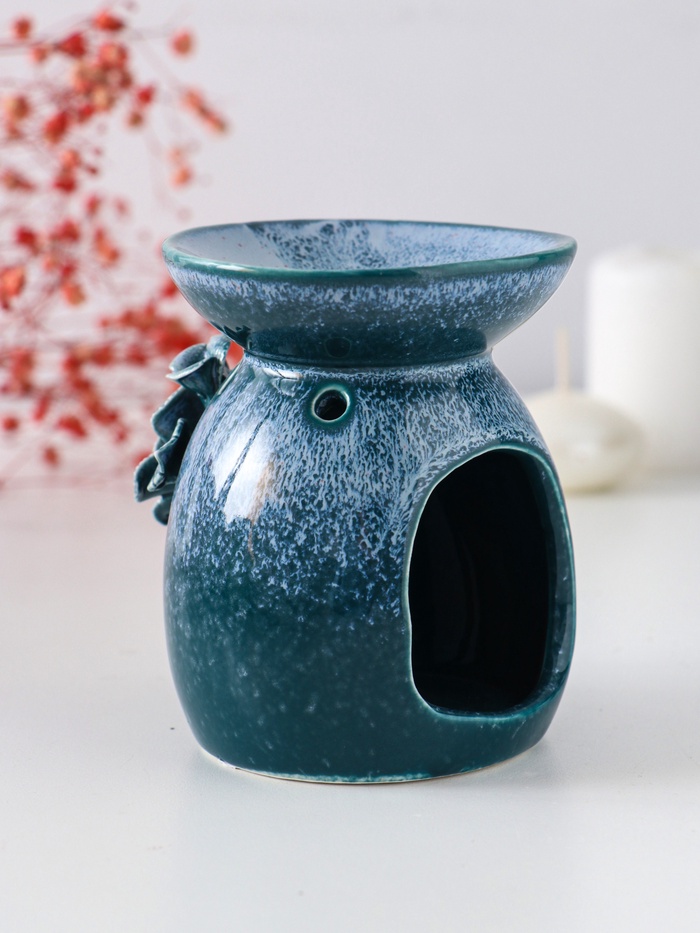 Аромалампа для эфирных масел «Полевой цветок», керамика, бело-синяя, 7.5×7.5×9.3 см