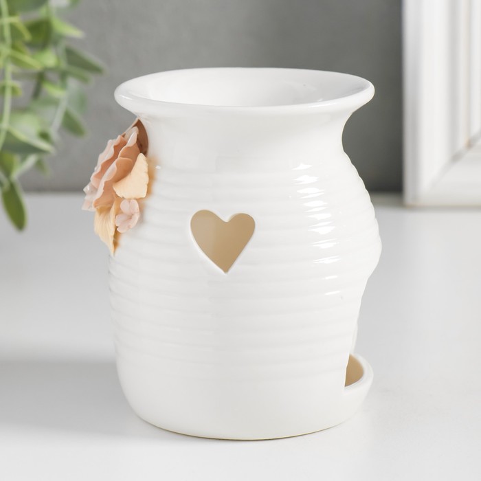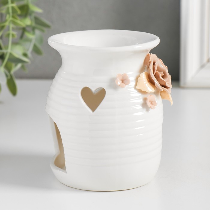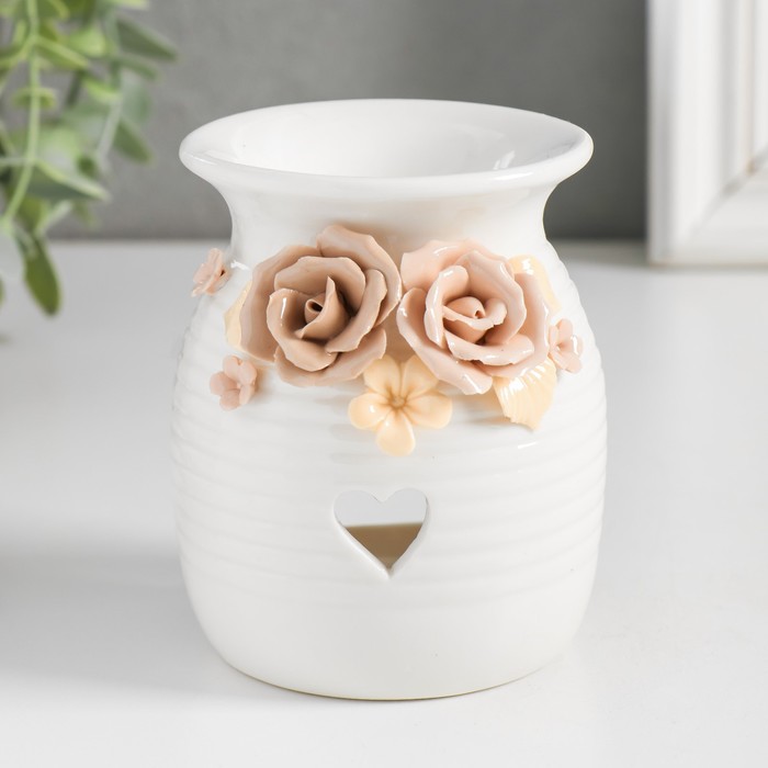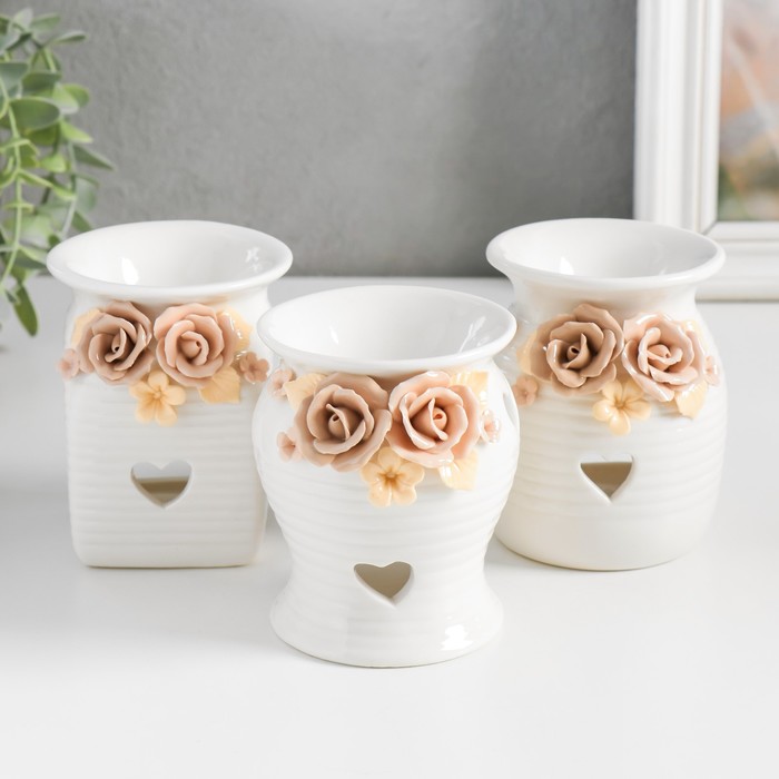 Аромалампа для эфирных масел «Розочки и незабудки с сердечком», керамика, 7.5×7.5×9.5 см, МИКС