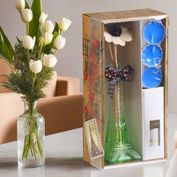 Ощутите волшебство Парижа прямо у себя дома с нашим уникальным набором в стиле Эйфелевой башни. Этот диффузор, выполненный в форме изящного символа Франции, не только наполнит ваш дом уютом, но и придаст ему неповторимый шарм. В комплекте с диффузором вы найдете чайные свечи, создающие приглушенное освещение и добавляющие нотки романтики в атмосферу, а также аромамасло, которое наполнит помещение нежным, умиротворяющим ароматом. Разгрузите свой день и погрузитесь в атмосферу спокойствия и расслабления с нашим набором, который привнесет в вашу жизнь частичку волшебства Парижа.