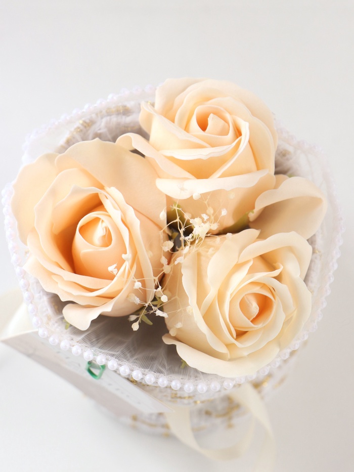 Этот кремовый букет из мыльных лепестков — трогательный и практичный подарок для особенного дня. Он соединяет в себе изящество декора и пользу для ухода за телом. Каждый лепесток — это кусочек нежного мыла, который превратит обычное купание в небольшой ритуал красоты и расслабления.