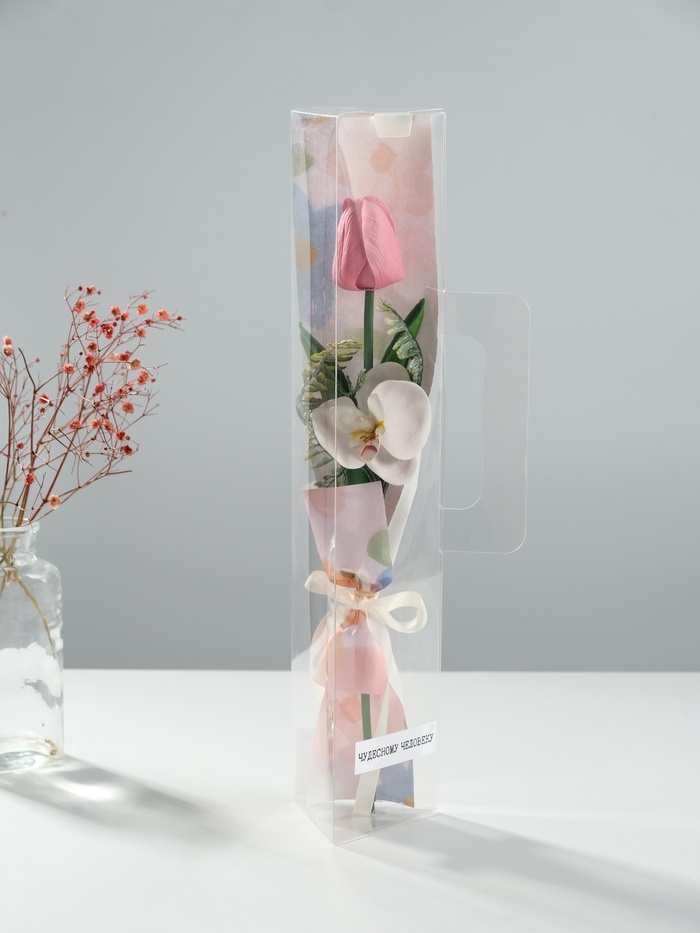 Представьте себе идеальный подарок для любимой женщины — букет из мыльных лепестков для ванны «Тюльпан с орхидеей». Этот изысканный букет, упакованный в стильную пластиковую коробку, станет не только украшением интерьера, но и источником удовольствия и ухода за собой.