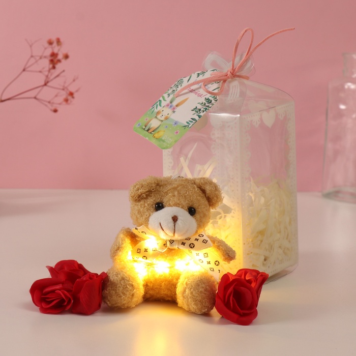 Этот набор — не просто украшение, а символ тепла и заботы. Мишка с бантом и мыльные розы создают атмосферу уюта и романтики, а их яркие цвета поднимают настроение. Такой подарок станет приятным напоминанием о вашем внимании и заботе.