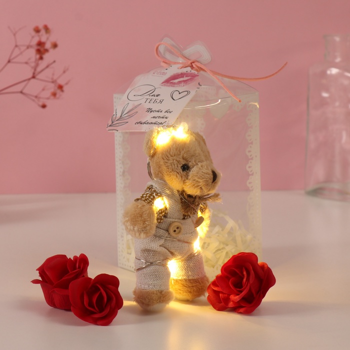 В наборе вы найдете милого мишку в комбинезоне и пять мыльных красных роз, украшенных «росой», которые подарят ощущение романтики и уюта. Этот разноцветный набор – прекрасный подарок на 14 февраля, 8 Марта, день рождения или просто так, чтобы порадовать близкого человека. Поставляется в PVC-коробке, придающей подарку элегантный и завершенный вид. Идеальный выбор для тех, кто хочет подарить немного тепла и внимания.